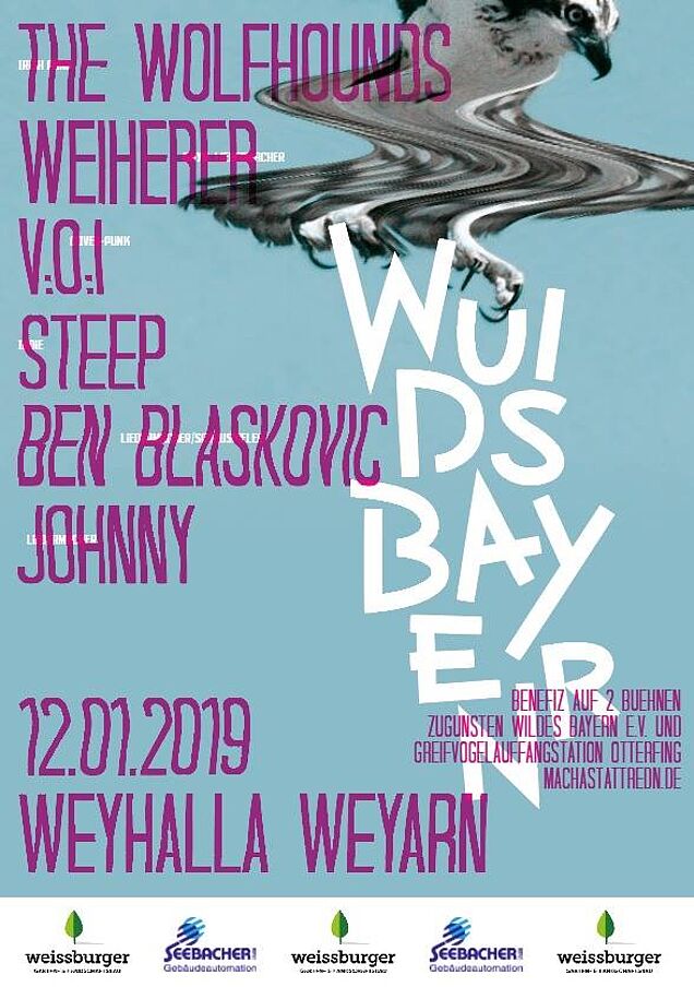 It will be wild on 12.01.2019 in the Musikcafe WeyHalla - many acts - Wildes Bayern e.V. and the birds of prey sanctuary in Otterfing will profit from the proceeds.