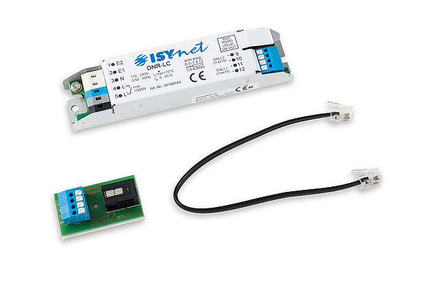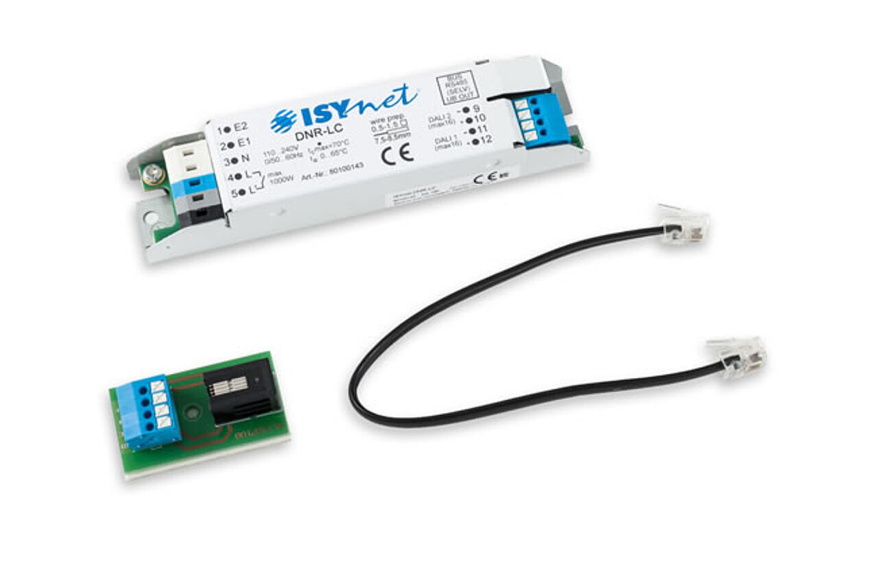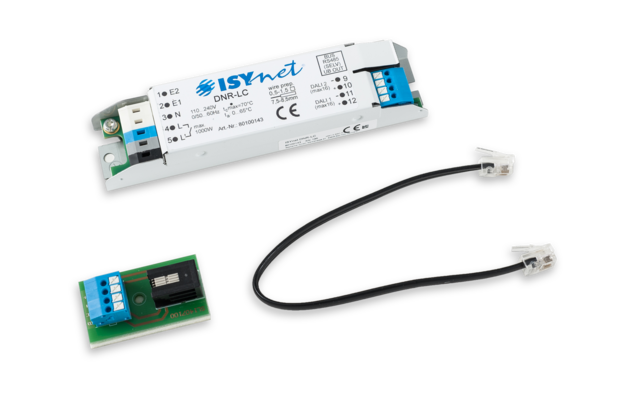 - If more than 2x16 ECGs are to be connected to a DNR-LC, there is the extension module DNR-DALI+16 (Article no. 80100145). Up to 3 units can be operated with one DNR-LC (max. 4x2x16 = 128 ECGs / 64 lamps possible).