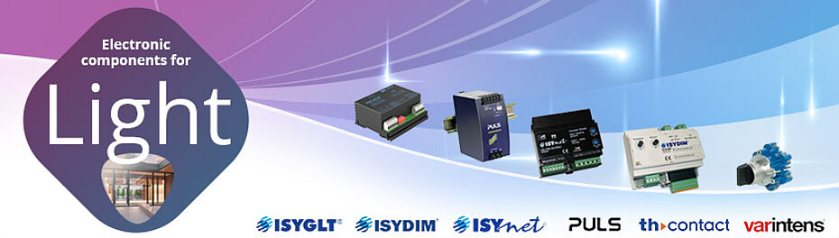 Components with interfaces of DALI, DMX and (0)1-10V for integration into ISYGLT and other systems such as KNX, LON, Crestron, LCN, BACnet, etc.