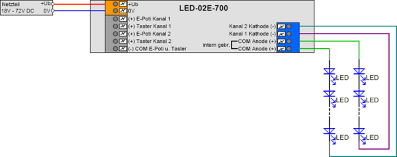 An external power supply unit is also required for operation. This must be dimensioned according to the type of LEDs used.