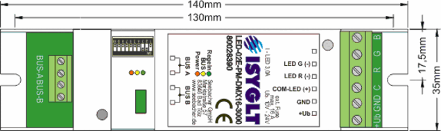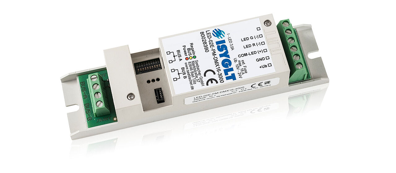 The LED Dimmer can optionally be operated on the ISYGLT BUS or DMX512 BUS.