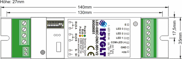 The LED Dimmer can optionally be operated on the ISYGLT BUS or DMX512 BUS.