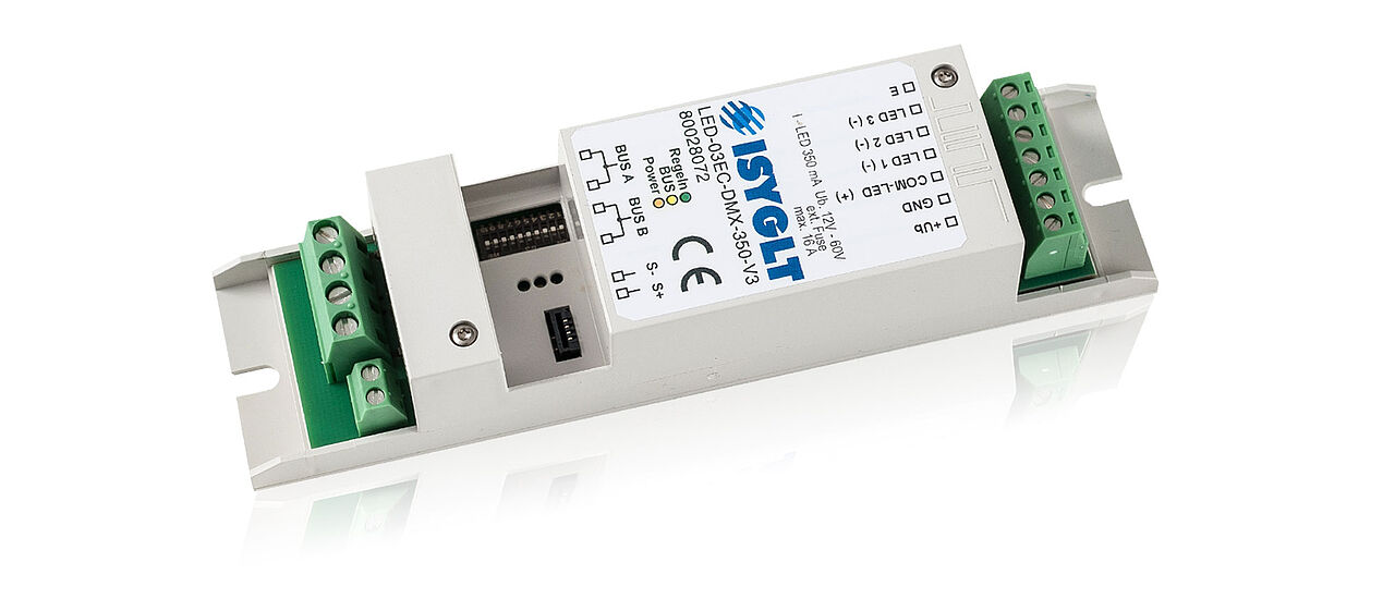 | LED-03EC-DMX-350-V2 Art. no. 80028051, 3-channel LED dimmer for power LED (350mA) with colourfast dimming, with housing, for very noise-sensitive applications |