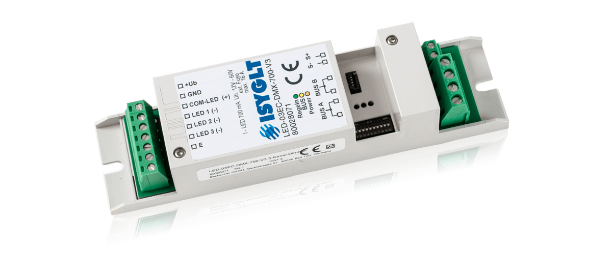 The LED Dimmer can optionally be operated on the ISYGLT-BUS or DMX512-BUS.