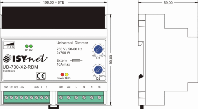 - Dynamic Base Load DGL-01-UP for stable dimming of LED retrofit (already integrated in the UD-700-X2-RDM)