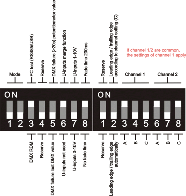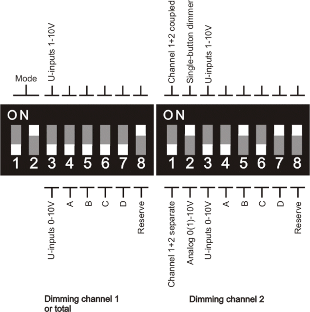 | DIP-C | DIP-D | Setting dimming characteristics such as min-max values, curves, etc. (see PC program for the UD-700-X2) |