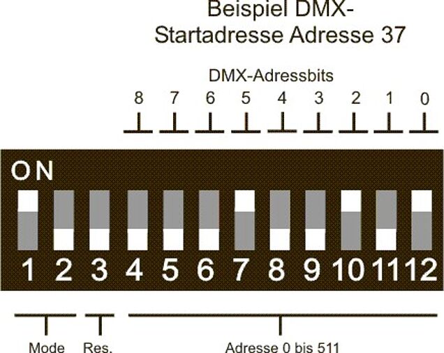 DIP 12 Adressbit 1 DMX-Startadresse (niedrigstes Bit)
