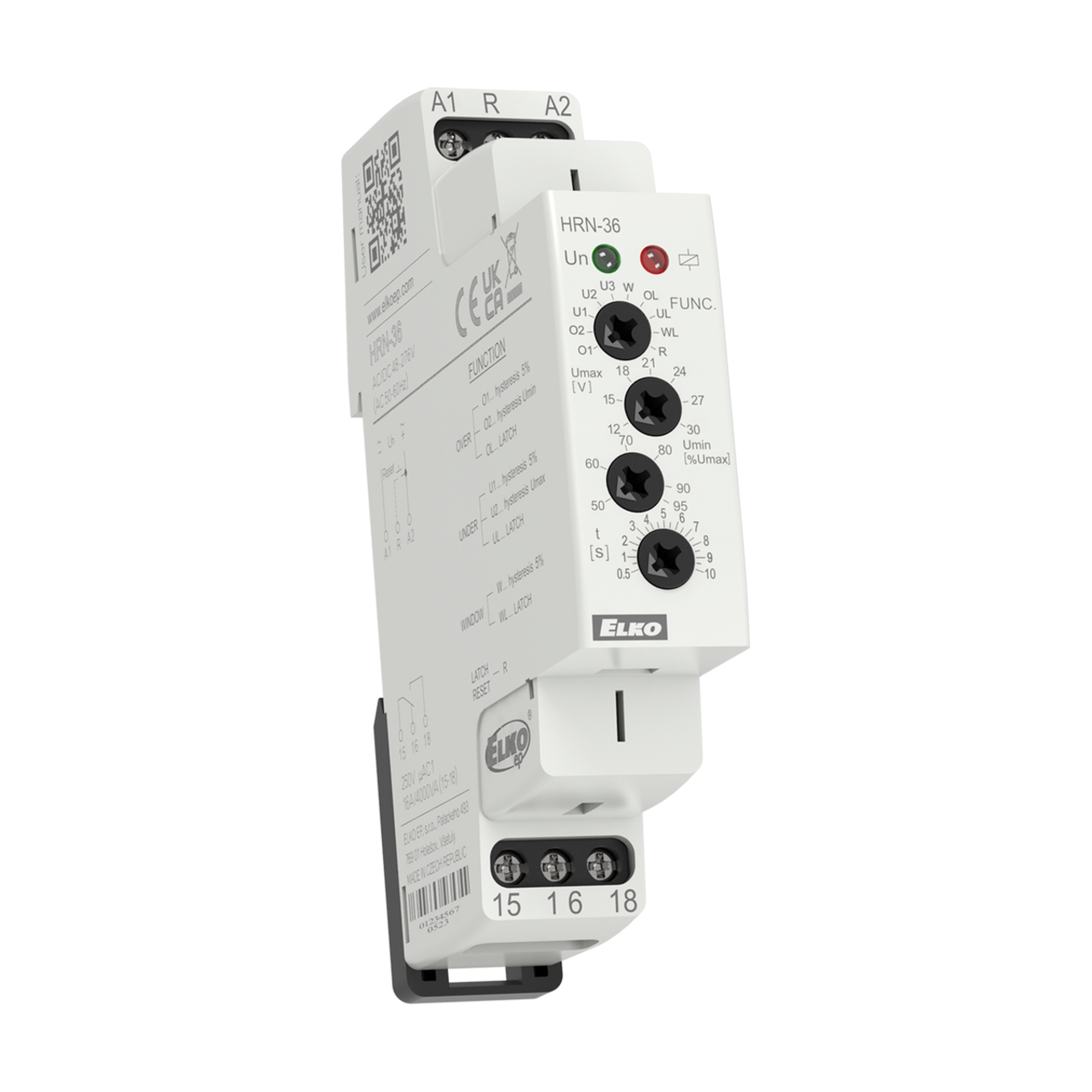 Das Überwachungsrelais HRN-36 dient zur Überwachung des Spannungsniveaus in einem DC Versorgungsbereich. Die überwachte Spannung ist gleichzeitig auch die Versorgungsspannung. Bei dem Relais ist es möglich, 2 unabhängige Niveaus einzustellen.
