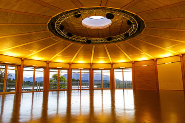 Möglich macht das die Lichtsteuerung der Firma Seebacher und das Leuchtendesign von CE Späth, welche perfekt aufeinander abgestimmt wurden. Per Knopfdruck können acht hinterlegte Lichtszenen und individuelle Farben von der Startseite aufgerufen werden. Je nach Veranstaltung werden über die separat angesteuerten Raumanteile wie Decke, Wand und Fußboden sehr unterschiedliche Raumeindrücke geschaffen.