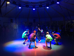 1.500 LEDs und 16 Millionen Farben sorgen dafür, dass die im Januar 2017 eröffnete eMotion Base in allen erdenklichen Farben erstrahlt. Der Multifunktionsraum für Bewegungstraining liegt oberhalb des Eisstadions und ist mit einer illuminierbaren Gebäudehülle umschlossen – eine Art Allianz-Arena im Mini-Format.