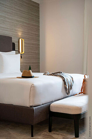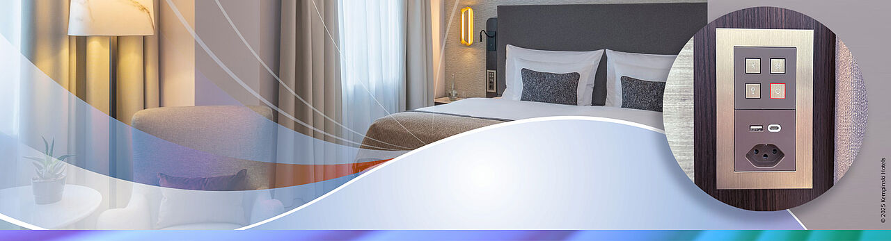 Die neu gestalteten Hotelzimmer bieten eine stilvolle und intuitive Lichtsteuerung. Über elegante Bedienstellen wählen Sie aus drei vorkonfigurierten Lichtszenen: