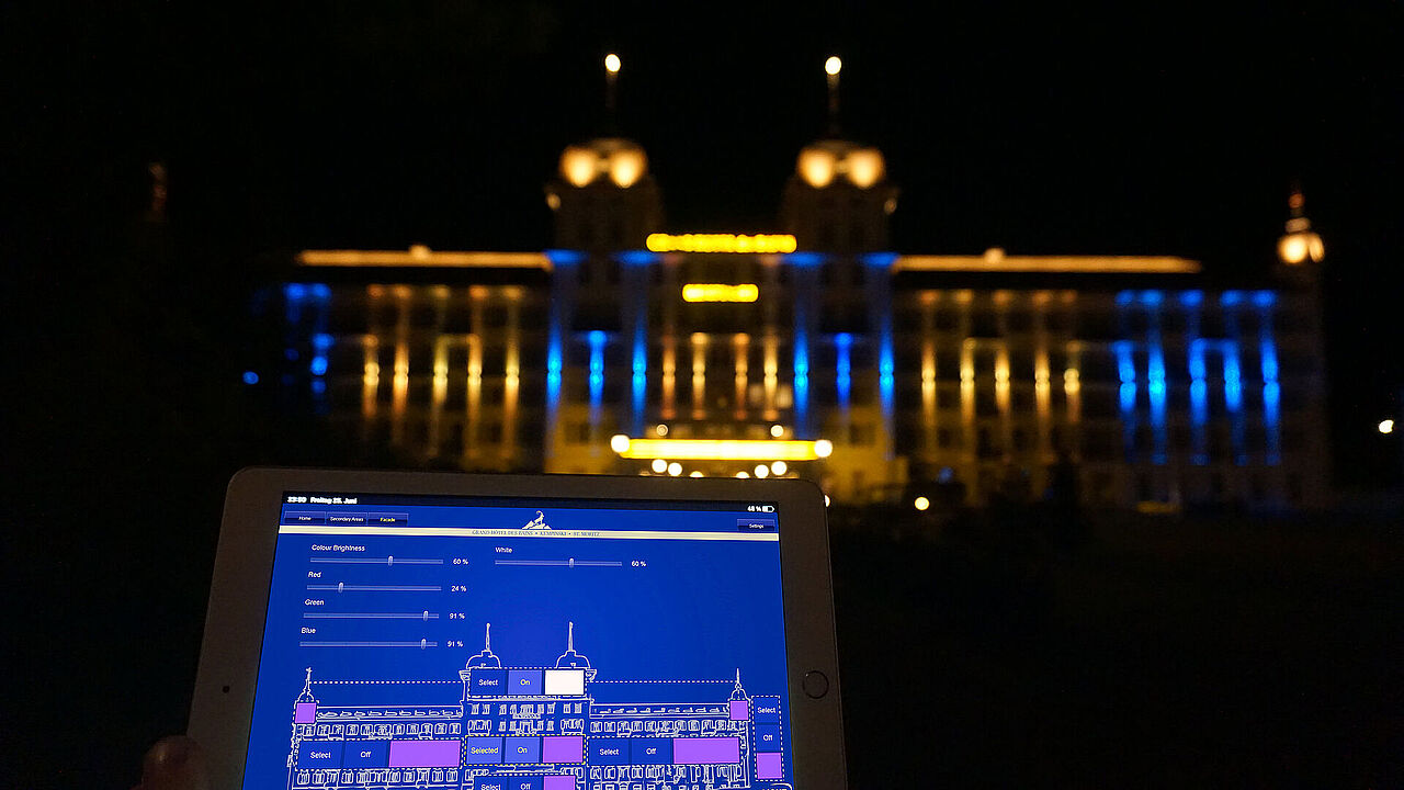 Insgesamt werden 38 Leuchten – in 7 Gruppen unterteilt – angesteuert. Ganz einfach zu bedienen über Touch-PC oder Wall-Touch.