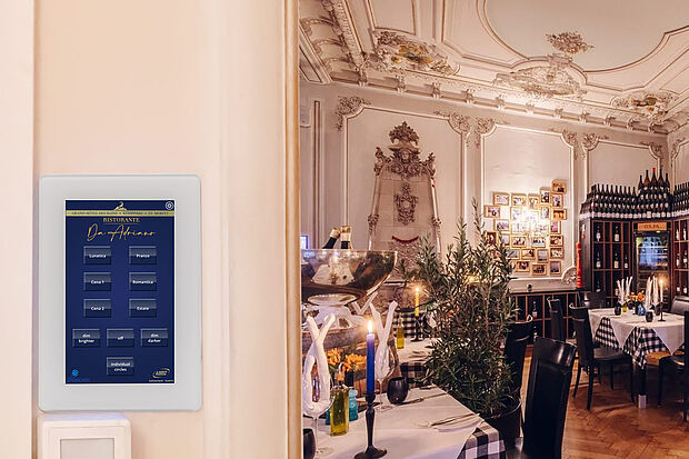 An der Rezeption ermöglicht ein Touchpanel die Anzeige den Zustand der Zimmerbeleuchtung.