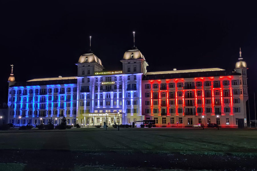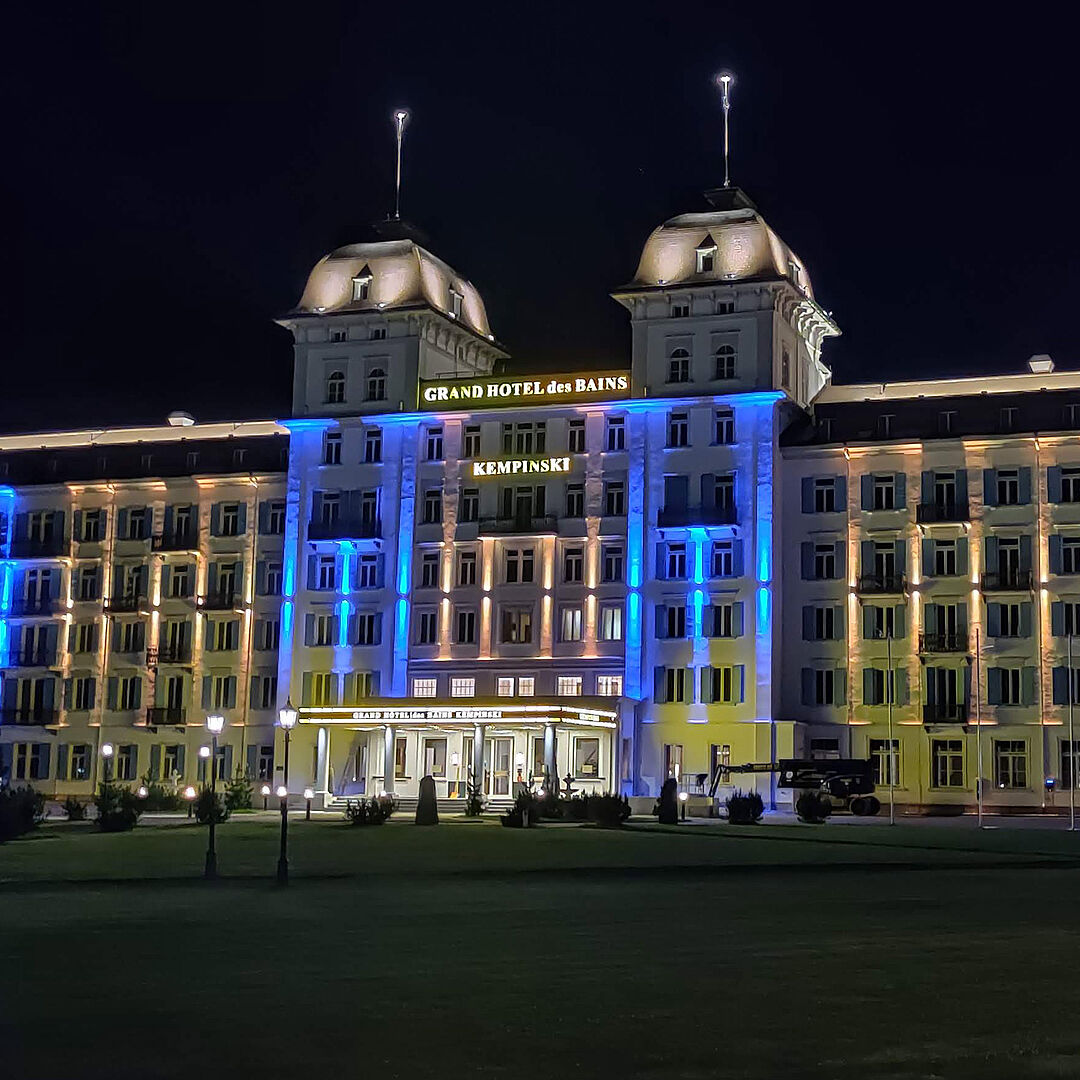 Bereits 2021 wurde die Fassadenbeleuchtung des Grand Hotel des Bains Kempinski St. Moritz grundlegend neu konzipiert. Die vorherige Halogenbeleuchtung war aufgrund ihres hohen Energieverbrauchs nicht mehr zeitgemäß und erforderte eine nachhaltige Lösung.