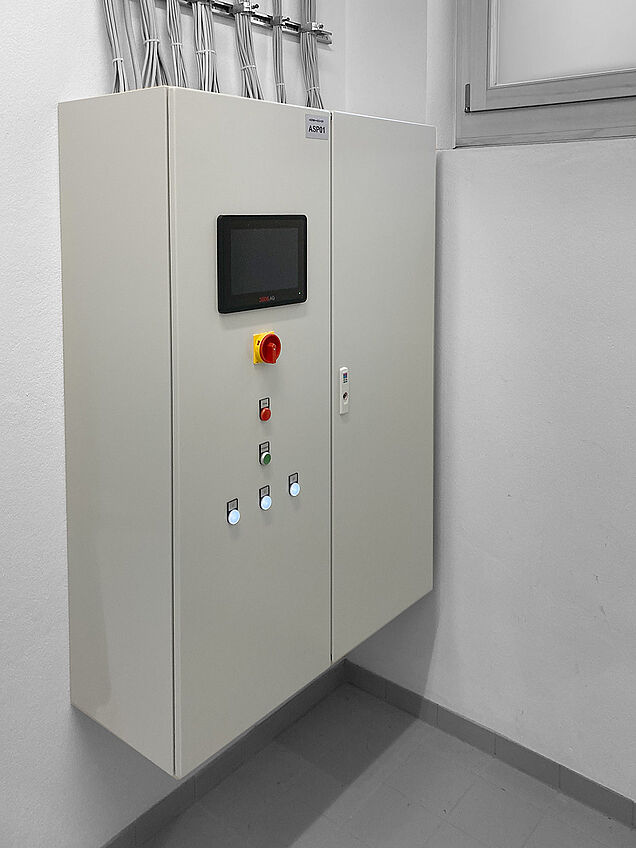 MSR-Schaltschrank ASP mit DEOS DDC-Controller, I/O-Modulen und Touch-PC